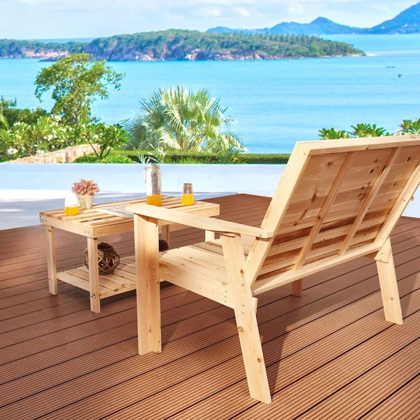 2-Piece Wood Patio Conversation Set with Engraved Bench and Coffee Table