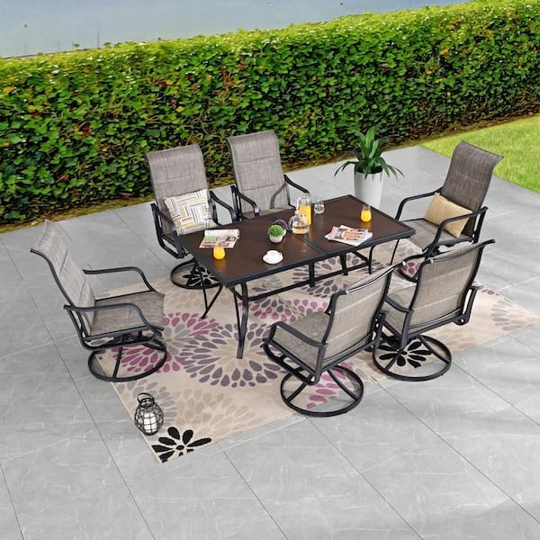 7-Piece Metal Swivel Textilene Outdoor Dining Set in Gray with 6-Swivel Chairs and Rectangular Table