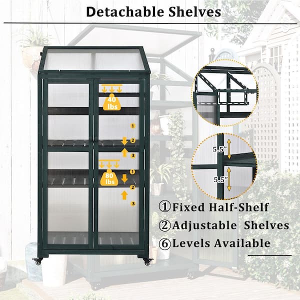 TOPMAX 32 in. W x 23 in. D x 62 in. H Wood Large Portable Greenhouse Balcony with Wheels and Adjustable Shelves