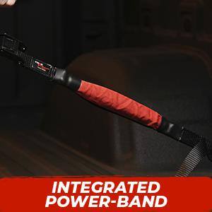 • Bungee style tension with ratchet strap strength