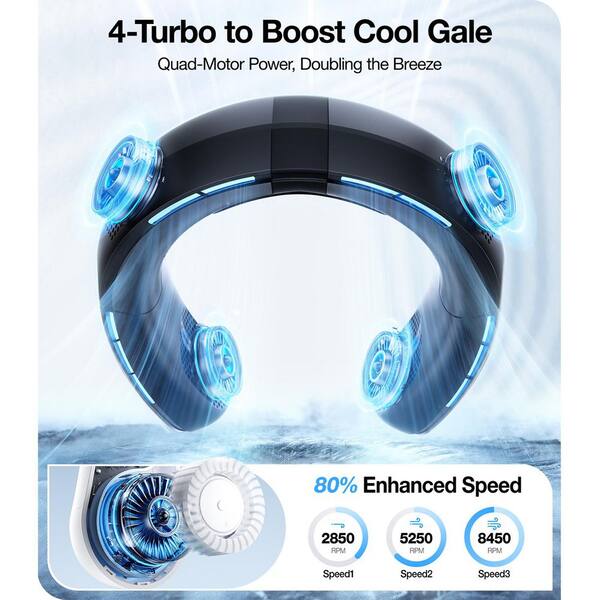 Coolite 1.37 in. 3-Fan Speeds Personal Neck Fan in Black with Foldable Feature
