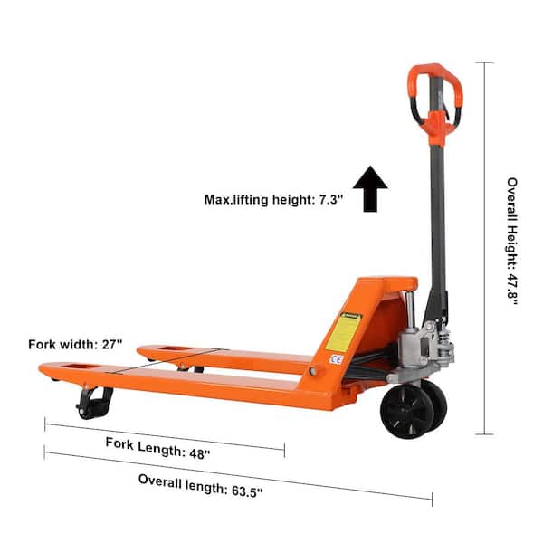 48 in. L x 27 in. W 5,500 lbs. Max Load Capacity Fork Manual Pallet Truck Jack with Nylon Fork Wheels Orange
