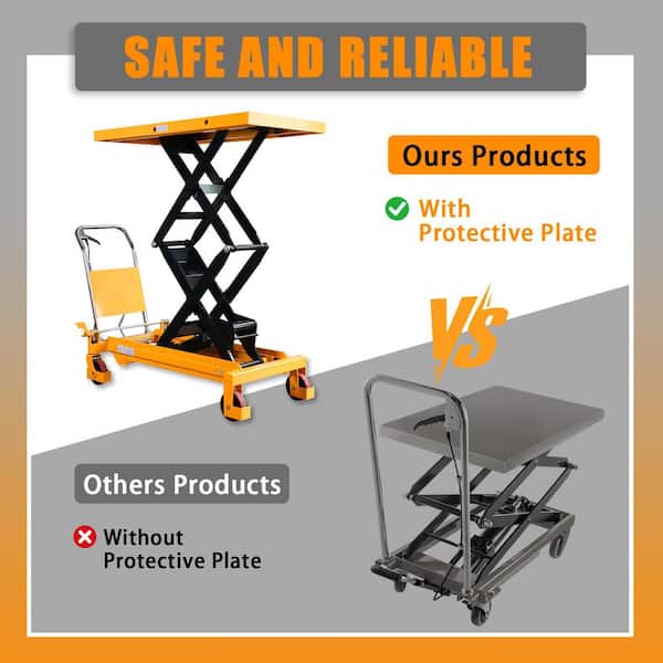 • Manual scissor lift table with a maximum load capacity of 1760lbs