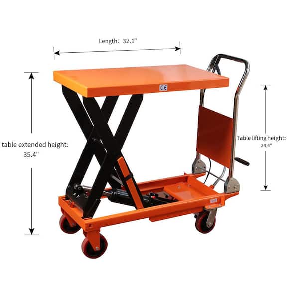 Orange Manual Hydraulic Single Scissor Lift Table 660 lbs. with 35.4 in. Lifting Height