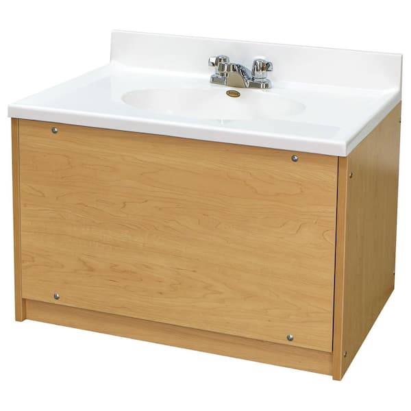 31 in. W x 21 in. D x 21.5 in. H Single Sink Freestanding Kids Bathroom Vanity with White Marble Top (Maple)