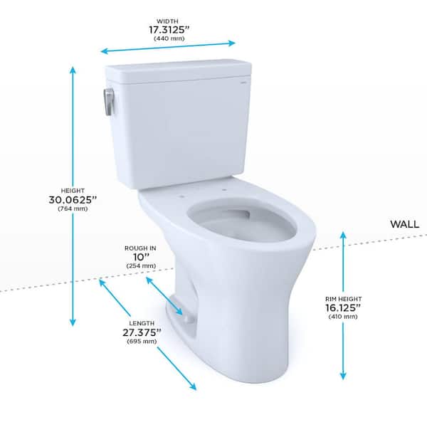 Drake 1G 10 in. Rough-In 2-Piece 1.0 GPF and 0.8 GPF Dual Flush Elongated Toilet in Cotton White, Seat not Included