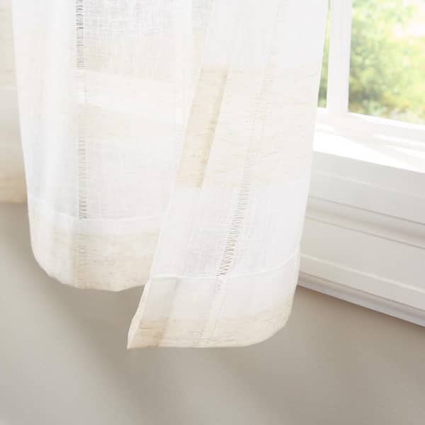 Pax Semi-Sheer Stripe Linen/White 50 in. x 96 in. Sheer Curtain Set (Set of 2)