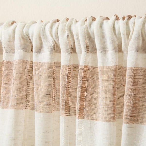Pax Semi-Sheer Stripe Rust/Linen 50 in. x 84 in. Sheer Curtain Set (Set of 2)