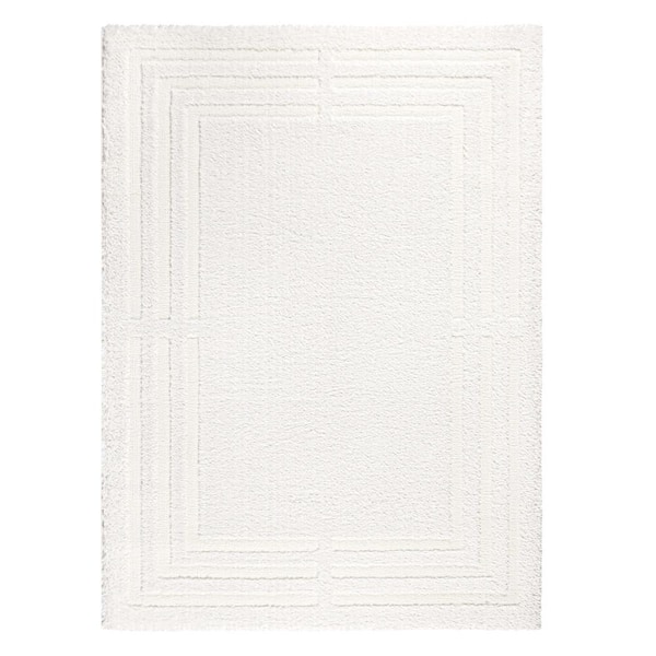 Everyday Cloud Shag Plush Border Ivory 6 ft. x 9 ft. Area Rug