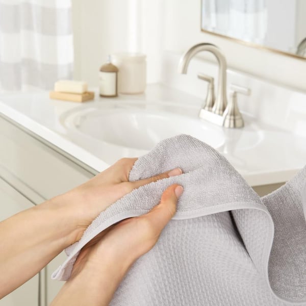 Small Waffle Woven Terry Stripe 13 in. x 13 in. Light Gray Cotton Washcloth Set 4-Pack