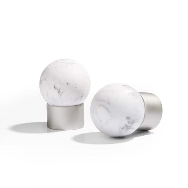 Marbled Sphere 66 in. - 120 in. Matte Silver Single Curtain Rod