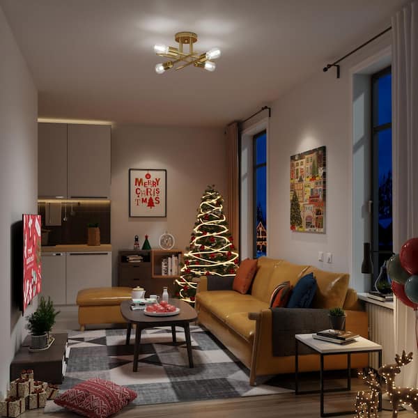 16 in. 4-Light Modern Sputnik Linear Gold Metal Industrial Farmhouse Semi- Flush Mount Ceiling Lights Chandelier Light