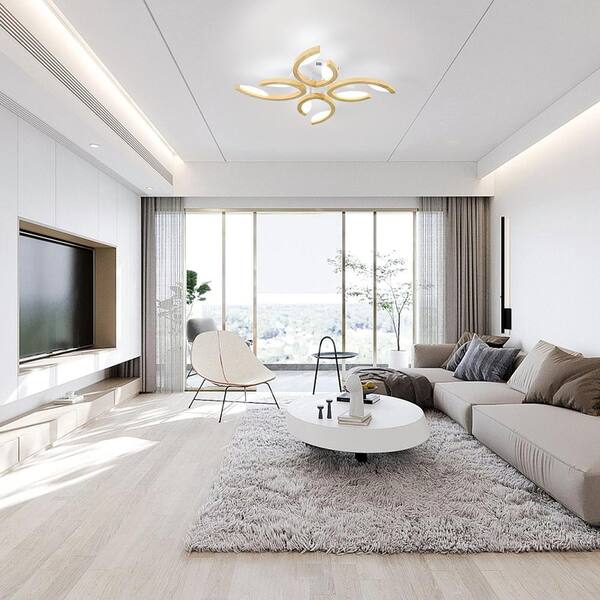 29 in. Wooden Modern Novel Leaf Clover Integrated LED Dimmable Semi-Flush Mount Ceiling Light with Remote Control