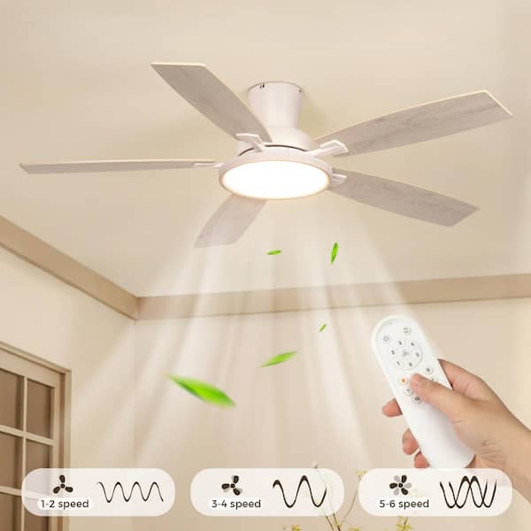52 in. Smart Indoor White Low Profile Large Flush Mount Ceiling Fan with Bright White Integrated LED for Living Room