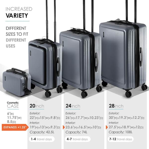 4-Piece Gray Nested Hard Luggage Set Expandable Spinner Suitcase Carry-On Weekender Exterior USB port TSA Compliant