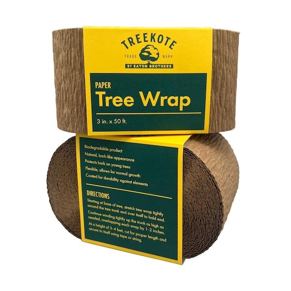 Tree Wrap 2 Pack - 3 in. x 50 ft. Coated Crepe Paper Weather Resistant Tree Protection from Sun Scald, Salt, Pests, Etc.