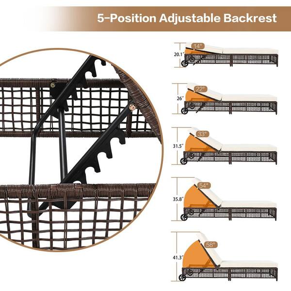 TREXM Brown Metal Outdoor Lounge Chair with Beige Cushions for Poolside, Backyard, Garden