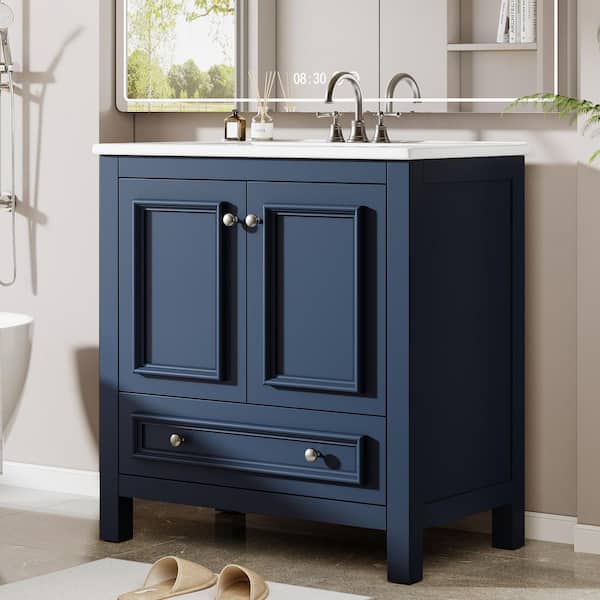 29.5 in. Storage Cabinet, Accent Cabinet with 2-Doors and Divided Drawer, Dark Blue