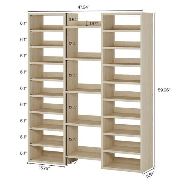 59 in. H x 47 in. W Light Brown Wood Shoe Storage Cabinet, 14-Tier Shoe Organizer with Large Capacity for Entryway