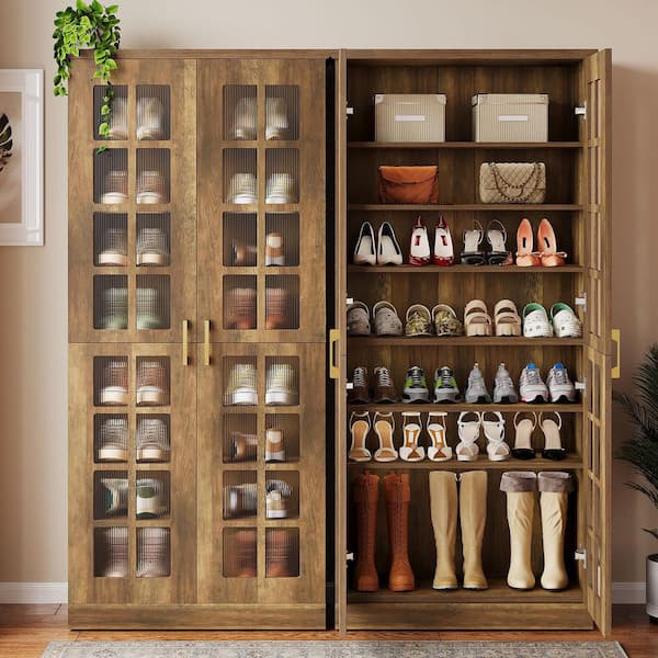 71 in. H x 31.5 in. W Brown Engineered Wood Shoe Storage Cabinet, 8-Tier Shoe Organizer Entryway Shoe Rack with Doors