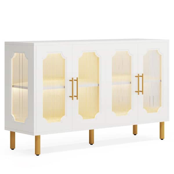 Alan White Wood 55 in. Buffet with Acrylic Glass Doors and Adjustable Shelves