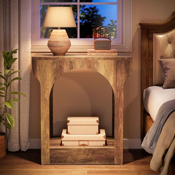 Andrea 23.6 in. Rustic Brown Rectangle Wood End Table with Storage Space for Living Room, Nightstand for Bedroom 2 PCS