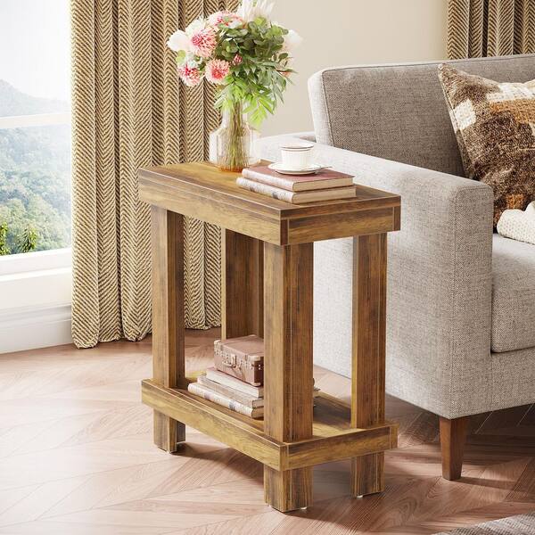 Andrea 23.62 in. Rustic Brown Wood Rectangle End Table, Record Player Stand with Storage,Tall Nightstand for Living Room