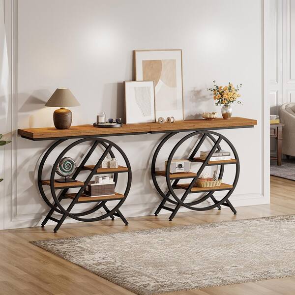 Benjamin 41 in. Walnut Rectangle Wood Console Table Behind Sofa Entryway Couch Accent Wall Table Home Office