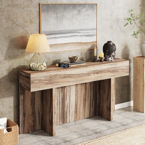 Benjamin 63 in. Rustic Brown Rectangle Wood Console Table, Long Narrow Entryway Hallway Table, Behind Couch Sofa Table