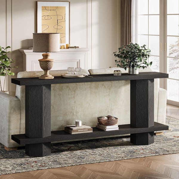 Benjamin 71 in. Long Black Rectangle Wood Console Table, Farmhouse Entryway Table Behind Couch Sofa Table