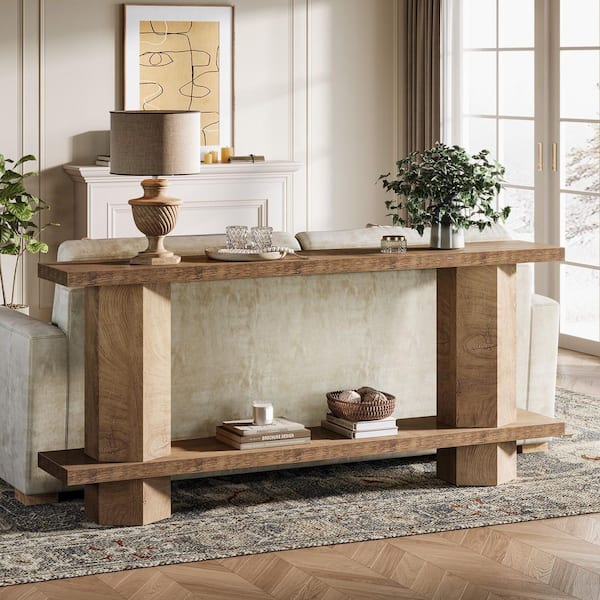 Benjamin 71 in. Long Brown Rectangle Wood Console Table, Farmhouse Entryway Table Behind Couch Sofa Table