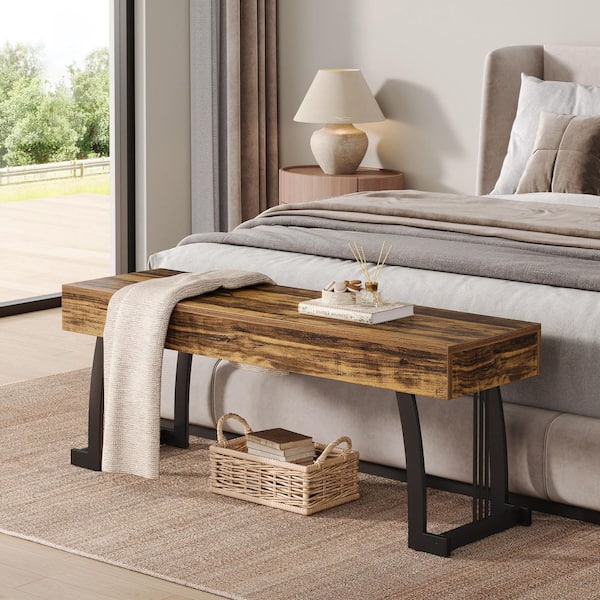 Brown Entryway Bench 47 in. Long Bench with Metal Legs, Indoor End of Bed Bench for Bedroom, Dining Room, Entry