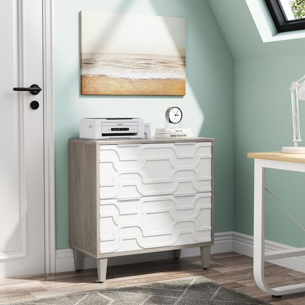 Cindy 2-Drawer White Gray Wood 31.5 in. W Lateral File Cabinet A4/Letter/Legal Size 15.75 in. Hx31. 5 in. D