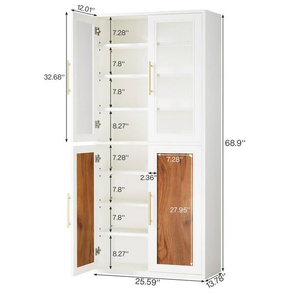 Frailey 69 in. Tall White Engineered Wood 8-Shelf Bookcase with Doors, Bookshelf Storage Cabinet with Adjustable Shelves