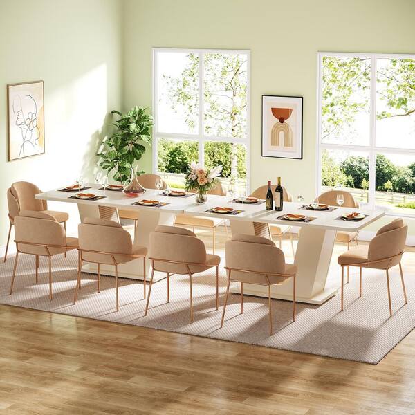 Halseey 55 in. Rectangular White Wood Large Pedestal Dining Table For 4-6 Kitchen Dinner Modern Home Office Desk