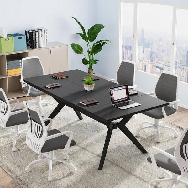 Halseey 63 in. Rectangular Black Wood Computer Desk for 6 Seats Wood Home Office 4 Legs X-shape Dining Table Kitchen
