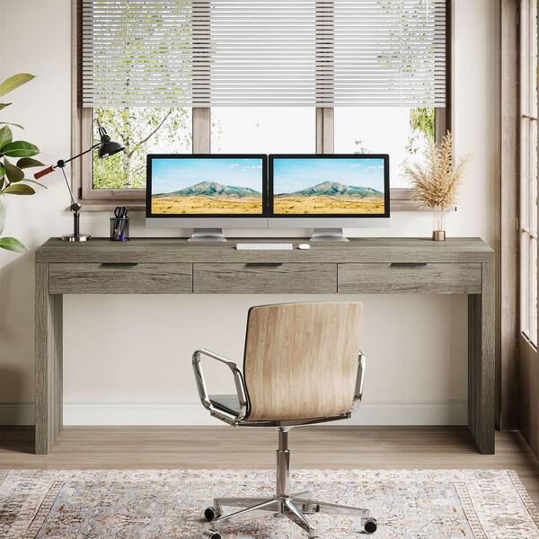 Halseey 63 in. Rectangular Gray Engineered Wood 3-Drawer Computer Desk, Home Office Desk Writing Table with Storage
