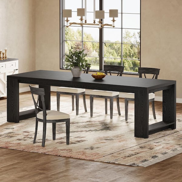 Halseey Black Long Rectangular Wood 86.61 in. Pedestal Dining Table Seats 6 for Living Room, Dining Room, Kitchen, Home