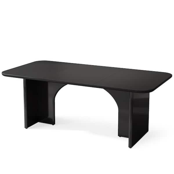 Halseey Modern Black Wood 63 in. Pedestal Dining Table (Seats 4-6)
