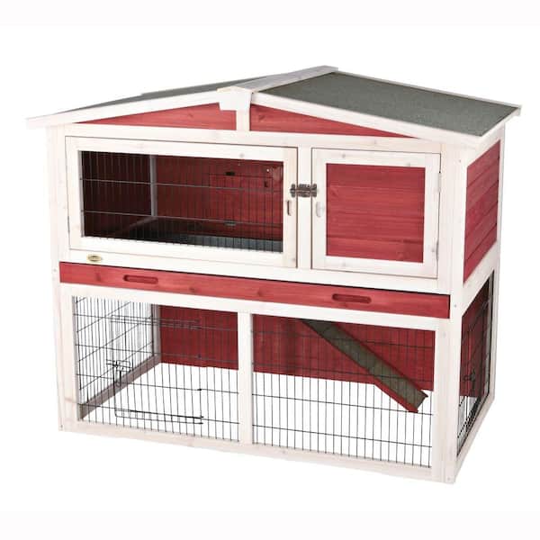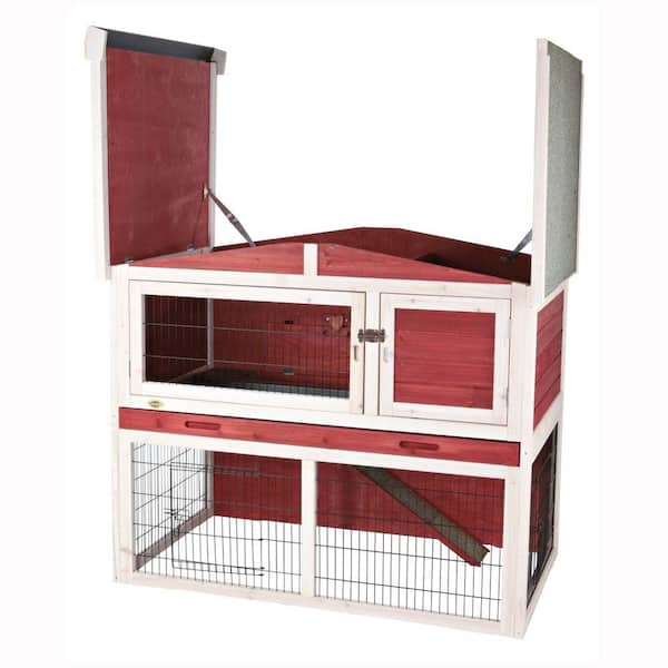 4 ft. x 2.5 ft. x 3.5 ft. Medium Rabbit Hutch with Peaked Roof in Red/White