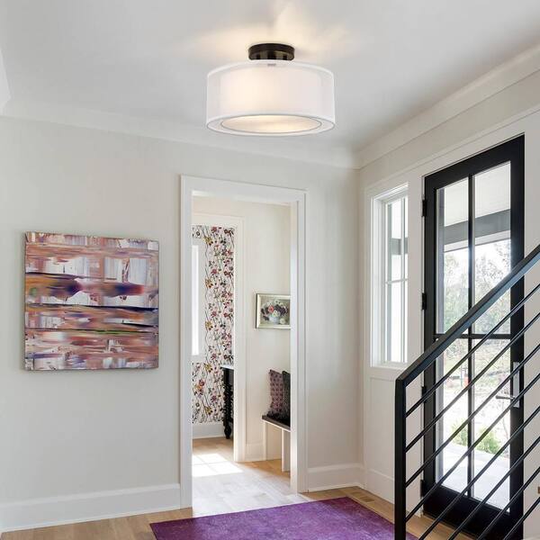 Celina 13 in. 2-Light White Double Drum Semi-Flush Mount Light With Black Hardware