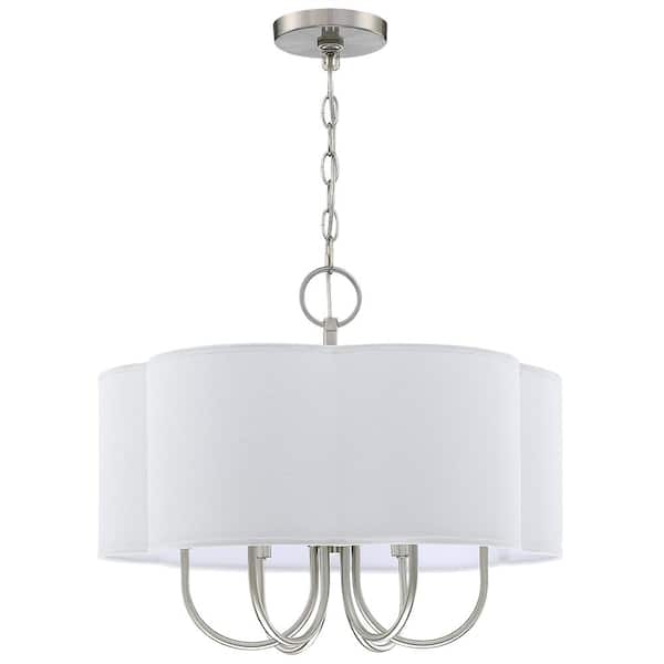 Selma 20 in. 6-Light Brushed Nickel Drum Chandelier with White Linen Scalloped Shade