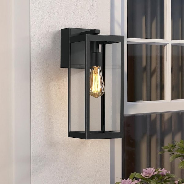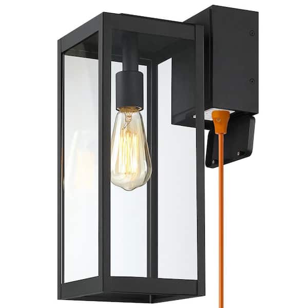 Trevot 1-Light 16 in. Black Outdoor Wall Lantern Sconce with Built-In GFCI Outlets