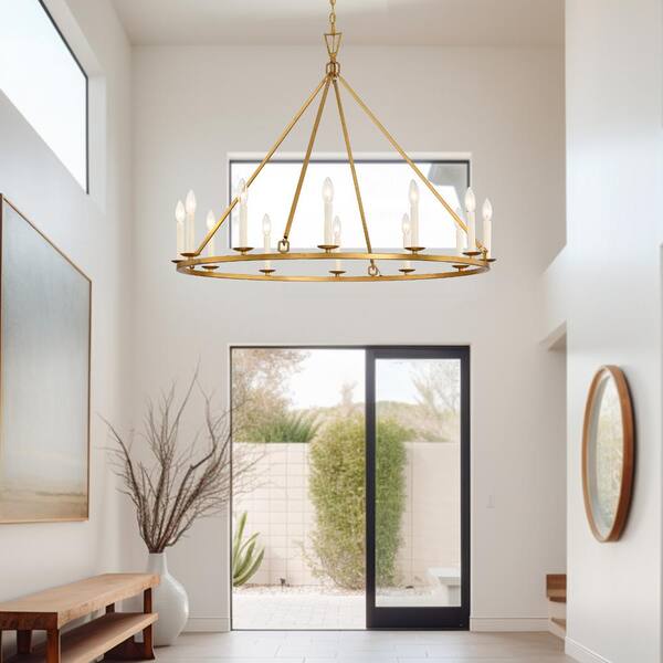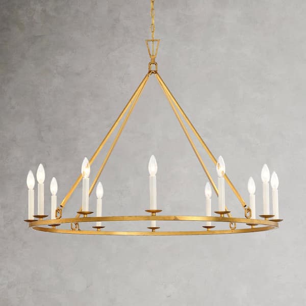 Williston 40 in. 12-Light Gold Candle Style Wagon Wheel Chandelier