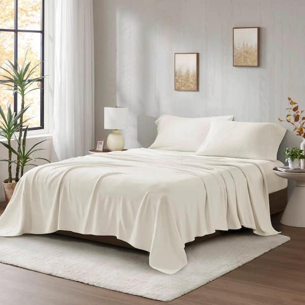 Micro Fleece 4-Piece Ivory Polyester Full Sheet Set