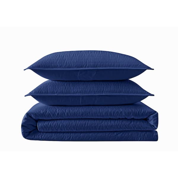 Everyday Antimicrobial 3-Piece Navy Microfiber King Quilt Set