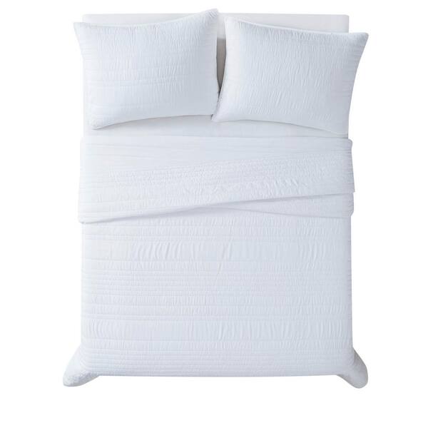 Everyday Antimicrobial 3-Piece White Microfiber Full/Queen Quilt Set