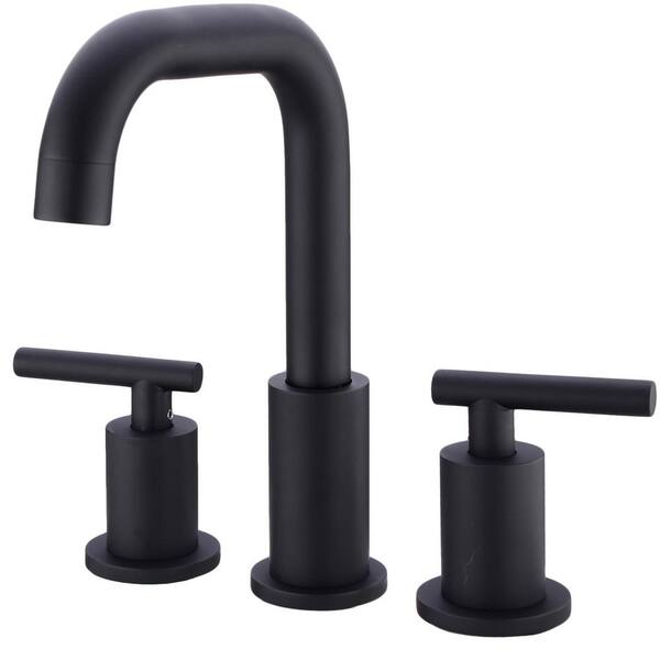 Brass 8 in. Widespread Double Handle Bathroom Faucet in Polished Matte Black (1-Pack)