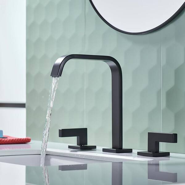 Brass 8 in. Widespread Double Handle Bathroom Faucet with Pop-Up Drian Kit Water Supply Hoses Matte Black