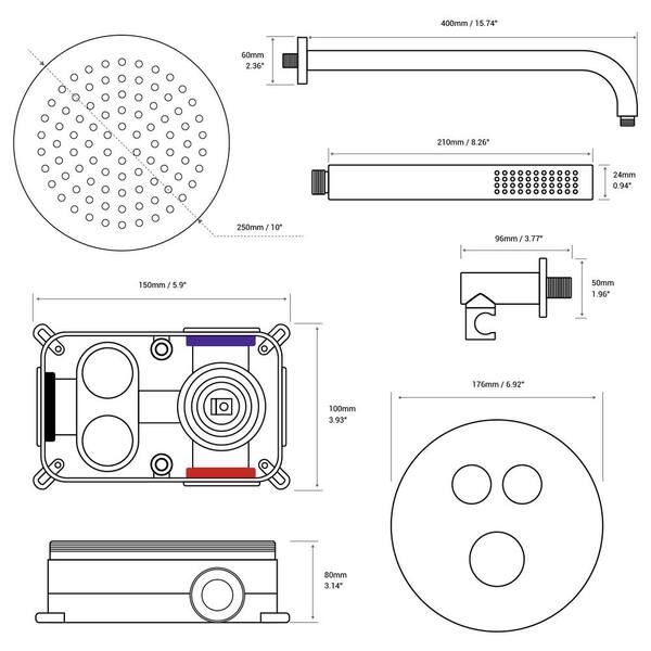 Single Handle 2-Spray Shower Faucet 1.8 GPM 10 in. Round Wall Mounted Shower with Pressure Balance in. Matte Black